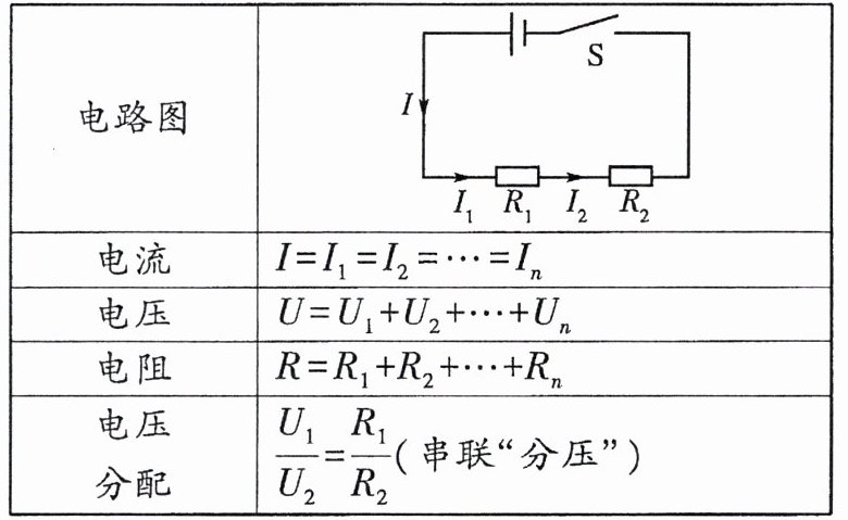 |电压|$U= U_{1}+U_{2}+…+U_{n}$|
