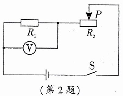 2.在如图所示的电路中,电源电压为$12\ V$且保持不变,电阻$R_{1}的阻值为10\ \Omega$,滑动变阻器$R_{2}$上标有“1 A”字样。闭合开关S,电压表示数为$5\ V$。