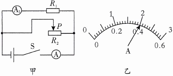 解:由图甲可知,$R_{1}$与$R_{2}$并联,电流表$A_{1}$测$R_{1}$支路电流,电流表A测干路电流。