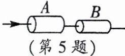5. 两段材料相同、长度相等、横截面积不同的圆柱形导体A、B,A比B的横截面积大,它们的电阻关系是$R_{A}$