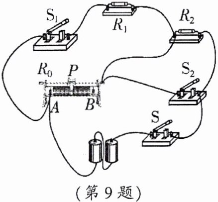 C选项:闭合开关S、$S_1、S_2$时,$R_2$被短路,$R_0$与变阻器并联,故C选项错误。