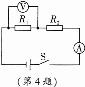 4. 如图所示的电路,电源电压恒为 3 V,闭合开关 S,电压表示数为 2.5 V,电流表示数为 0.5 A。求: