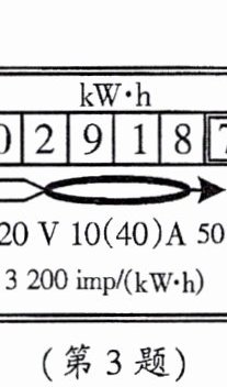 3. 小明家的电能表上个月月底的示数为 0 2 8 1 8 2,本月底的示数如图所示,他家本月消耗电能