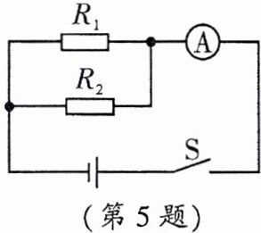 5. 如图所示电路中,电源电压为 10 V,$R_{1}= 10\ \Omega$,闭合开关 S,电流表示数为 1.5 A。求: