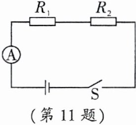 11.(2025·八中)如图所示电路,电源电压$U= 9\ V$,$R_{1}= 10\ \Omega$,$R_{2}= 20\ \Omega$,闭合开关S。求: