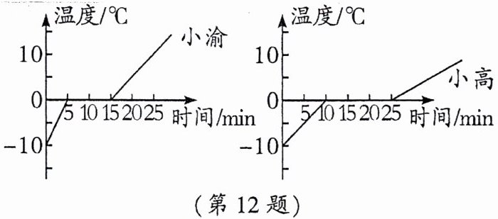 12.小渝和小高在探究“冰熔化时温度的变化规律”实验中,根据实验数据分别绘出冰的温度-时间图像如图所示,下列选项中不可能造成这种情况的原因是(