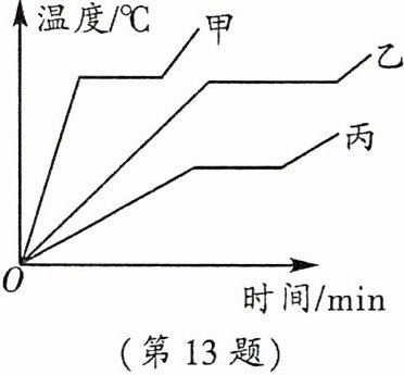 13.在加热条件完全相同的情况下,甲、乙、丙三种物质的熔化图像如图,由图可知: