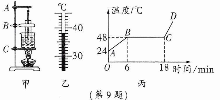 (4)根据实验数据绘出该物质的温度-时间图像如图丙所示,该物质是______(选填“晶体”或“非晶体”)。第8 min该物质处于______(选填“固态”“液态”或“固液共存态”)。