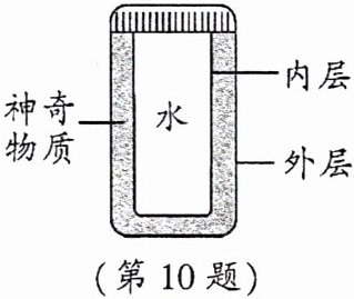 10.如图所示,市场上有一种“55 ℃保温杯”,外层为隔热材料,内层为导热材料,夹层间有“神奇物质”。开水倒入杯中数分钟后,水温降为55 ℃且能较长时间保持不变。“神奇物质”在55 ℃(
