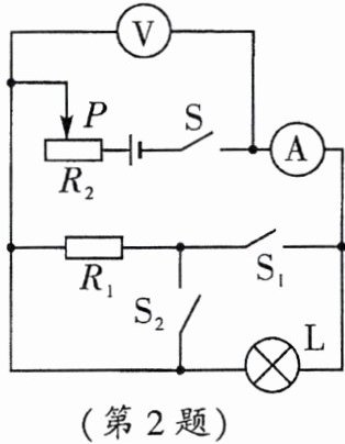 (2)解:当$R_2$滑片在最右端,S、$S_1$闭合,$S_2$断开时,$R_1$与灯泡L并联,电流表测干路电流。