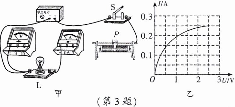 3.在“测量小灯泡电阻”的实验中,小超选用以下器材:额定电压(即正常工作时的电压)为2.5 V的小灯泡、电压表、电流表、滑动变阻器(50Ω 0.5 A)、可调节学生电源、开关各一个,导线若干,设计如图甲所示的电路。