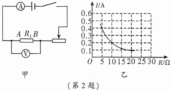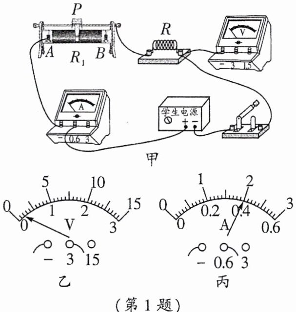 (1)设计并正确连接如图甲所示的电路,把定值电阻$R_1$接入图甲中的A、B两点之间,将滑动变阻器的滑片移到最