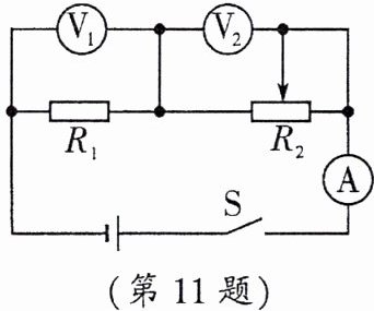 解:由图知,R₁与R₂串联,电压表V₁测R₁电压,V₂测R₂电压,电流表测电路电流。