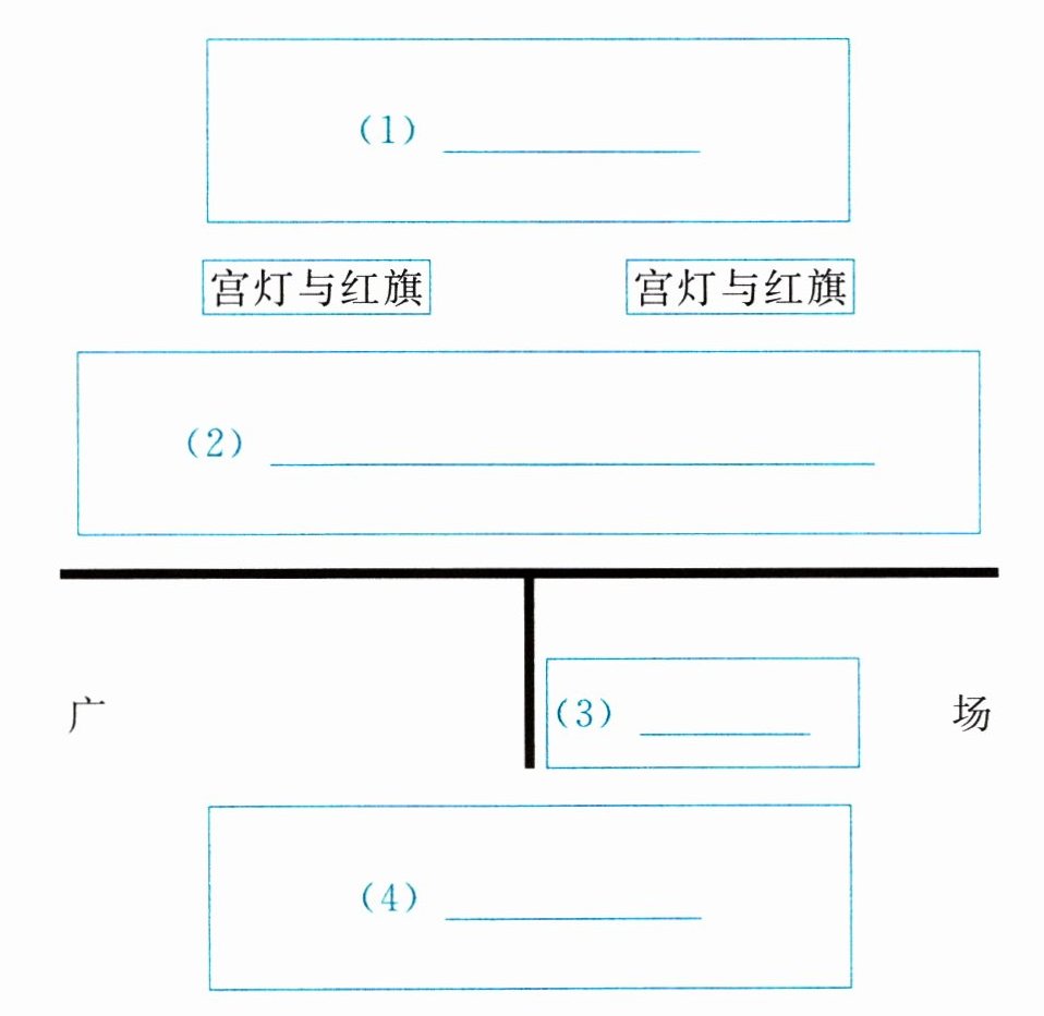 )大红宫灯彰显喜庆,八面鲜红的旗 zhì(帜