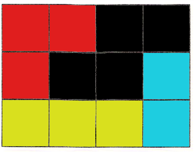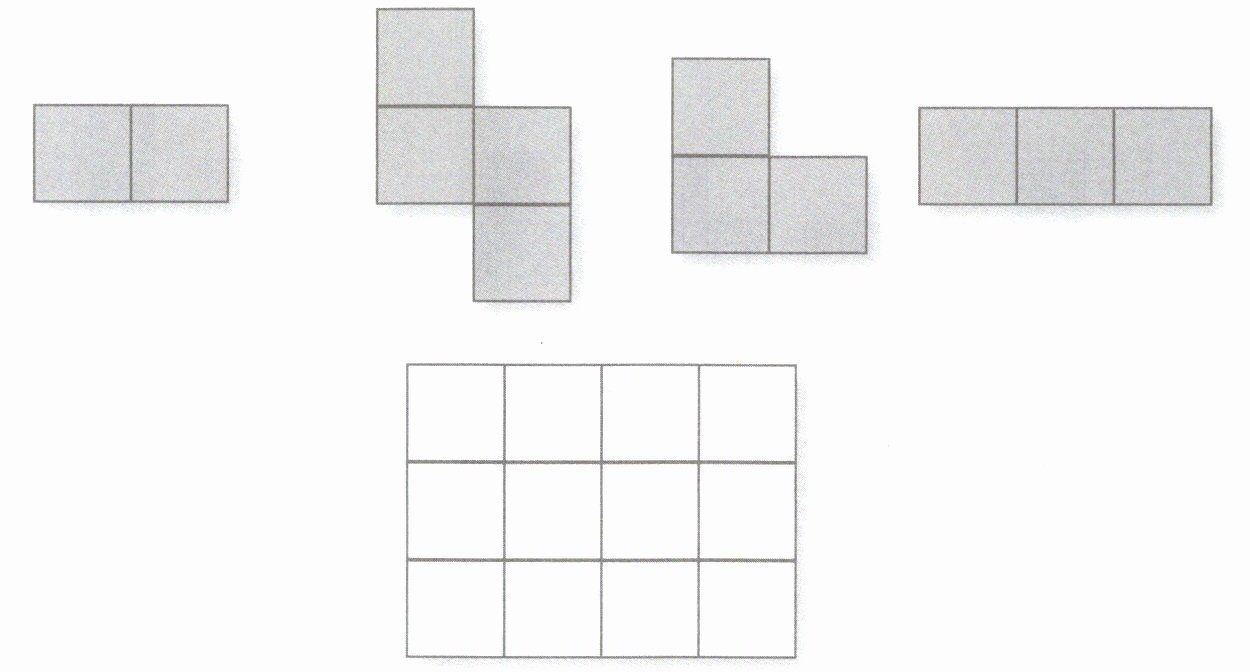 1 将下列多连块图形组成一个4×3的长方形。(在长方形中用不同的颜色表示)