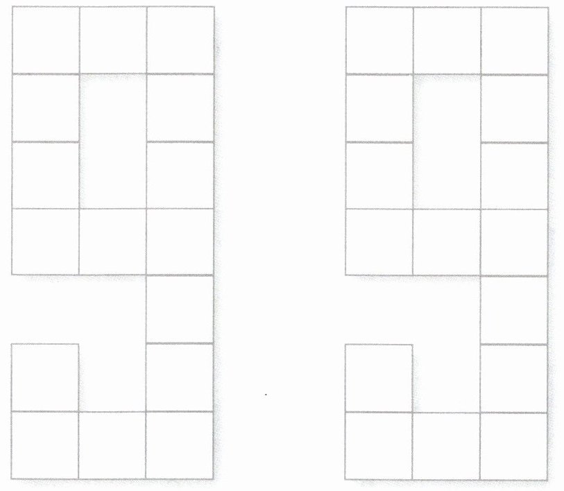 2 用多种四连块分一分数字“9”,在图中画一画。