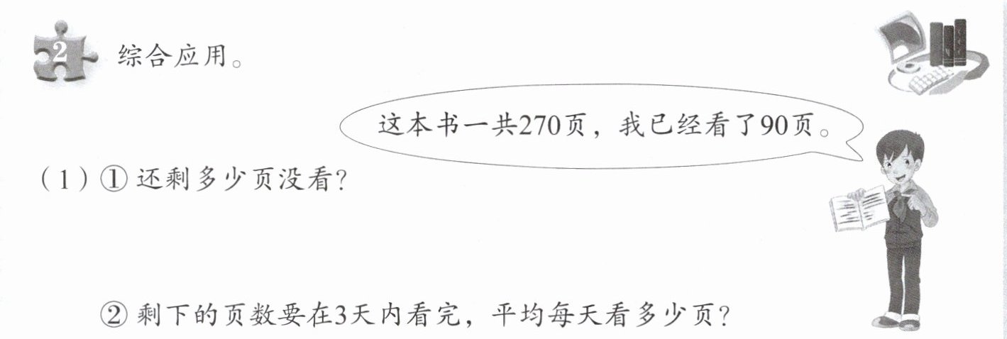 解析:题目考查了整十数、整百数的除法运算以及简单的减法和除法应用。对于给出的除法算式,可直接进行计算;对于应用部分,需要先通过减法求出剩余页数,再用除法求出平均每天看的页数。