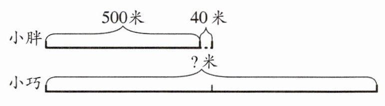 阳光体育活动中,小胖、小巧和小丁丁都参加了跑步健身活动。活动结束后小胖说:“我跑了500米,比小巧跑的一半少40米。”