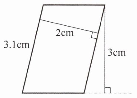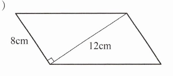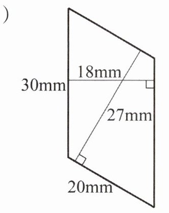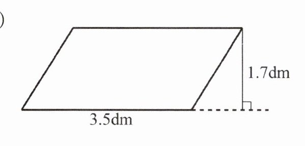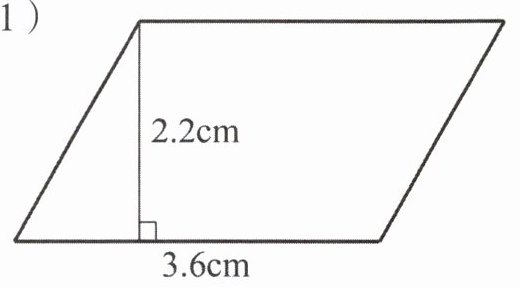 (2)平行四边形的底是 7cm,与这条底边相对应的高是 4cm,它的面积是$( )cm^2。$