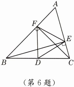 6. 如图,在 $ \triangle ABC $ 中, $ BE \perp AC $, $ CF \perp AB $,垂足分别为 $ E $、 $ F $, $ D $ 是边 $ BC $ 的中点,连接 $ DF $、 $ EF $、 $ DE $.