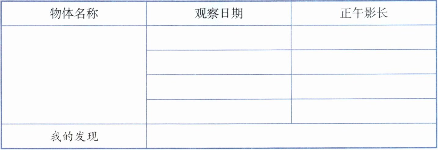 连续4周观测物体正午影长变化:(假设观测记录如下,实际需真实观测记录)