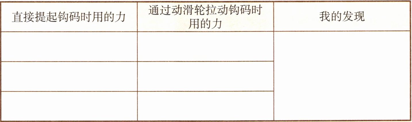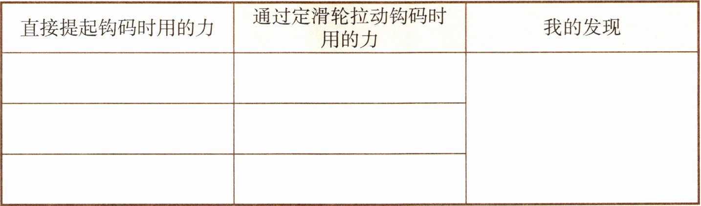 |直接提起钩码时用的力|通过定滑轮拉动钩码时用的力|我的发现|