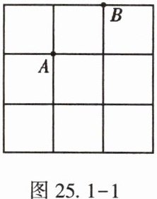 13. (★★)在图25.1 - 1所示的边长为1的小正方形组成的网格中有A,B两点,在格点上任意放置点C,恰好能使$\triangle ABC$的面积为1的概率为______.
