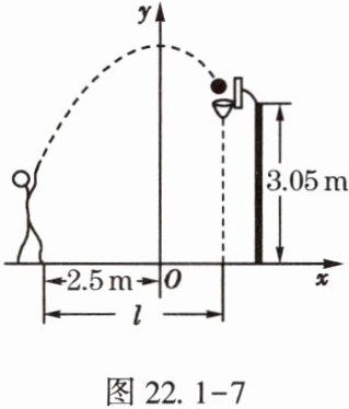 13. (★★) 小明在某次投篮中,篮球的运动路线是抛物线 $ y = -\frac{1}{5}x^{2} + 3.5 $ 的一部分(如图 22.1 - 7),若投篮命中篮圈中心,则他与篮底的水平距离 $ l $ 是【 】