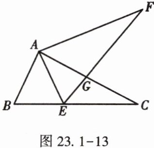 18. (★★)(苏州)如图23.1-13,在$\triangle ABC$中,点E在BC边上,$AE = AB$,将线段AC绕A点旋转到AF的位置,使得$\angle CAF = \angle BAE$,连接EF,EF与AC交于点G.