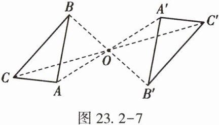 7. (★) 如图 23.2 - 7,$\triangle ABC和\triangle A'B'C'关于点O$对称,则$BC和B'C'$的位置关系是____.