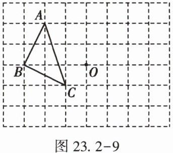 9. (★) 如图 23.2 - 9,在正方形网格中有一个$\triangle ABC$. 作出$\triangle ABC关于点O的中心对称图形\triangle A'B'C'$(不写作法,但要标出字母).