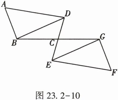 10. (★) 如图 23.2 - 10,若四边形$ABCD与四边形FGCE$成中心对称,则它们的对称中心是点____,点$A$的对称点是点____,点$E$的对称点是点____. $BD//$____,且$BD = $____. 连接点$A$,$F$的线段经过点____,且被点$C$____,$\triangle ABD\cong$____.