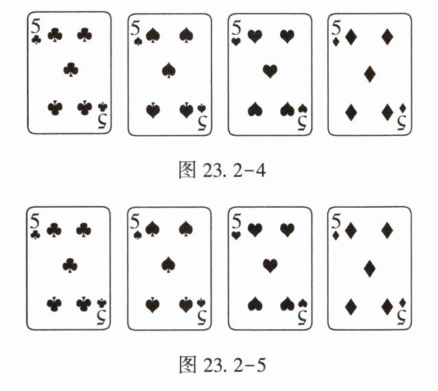 6. (★) 现有如图 23.2 - 4 所示的四张牌,若只将其中一张牌旋转$180^{\circ}$后得到图 23.2 - 5,则旋转的牌是图 23.2 - 6 中的【 】