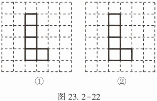 12. (★)如图 23.2 - 22,方格纸中的每个小正方形的边长均为 1. 观察图①②中所画的 L 形图形,然后各补画一个小正方形,使图①中所成的图形是轴对称图形,图②中所成的图形是中心对称图形.