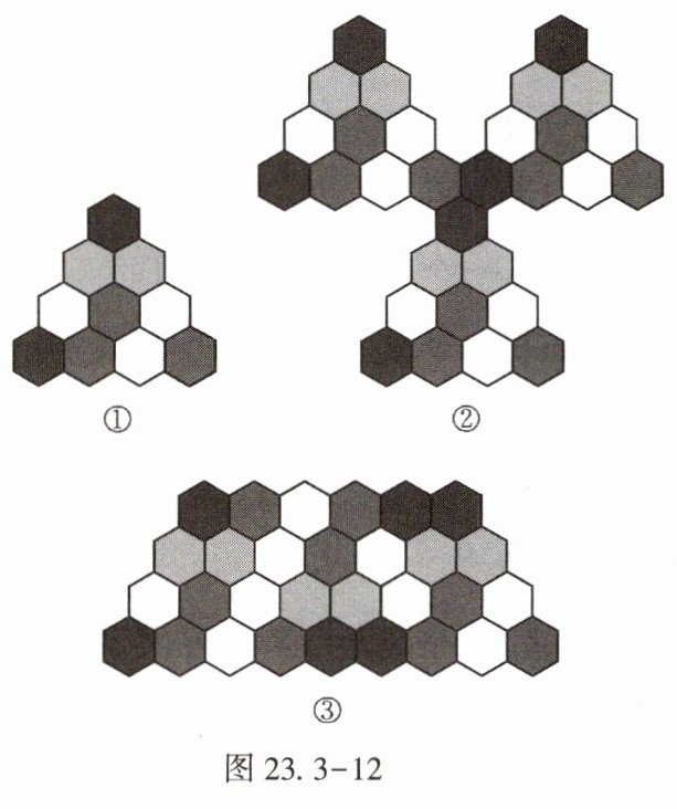 10. (★★)观察图23.3-12中的图案,你能利用图①来分析图②和图③是如何形成的吗?
