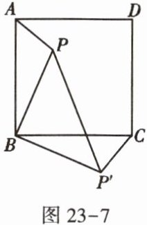 11. ($★★$)如图$23 - 7$,$P是正方形ABCD$内一点,将$\triangle ABP绕点B顺时针方向旋转后与\triangle CBP'$重合,若$PB = 3$,则$\angle BP'P$的度数为,$PP' = $。