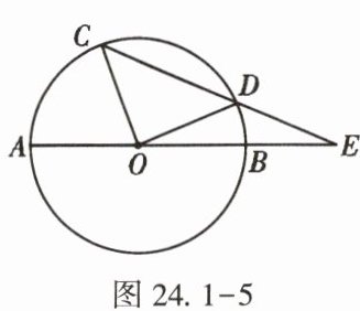 13. (★★)如图24.1-5,$AB是\odot O$的直径,$CD是\odot O$的弦,$AB$,$CD的延长线交于点E$,已知$AB = 2DE$,若$\triangle COD$为直角三角形,则$\angle E$的度数为【 】