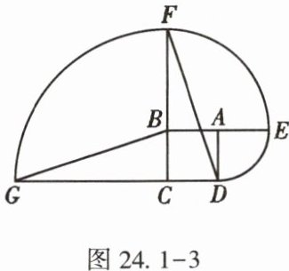 10. (★★)如图24.1-3,正方形$ABCD$的边长为1,点$E$,$F$,$G分别在BA$,$CB$,$DC$的延长线上,且$\overset{\frown}{DE}$,$\overset{\frown}{EF}$,$\overset{\frown}{FG}的圆心依次是A$,$B$,$C$. 连接$GB和FD$,则$GB与FD$的关系是______.