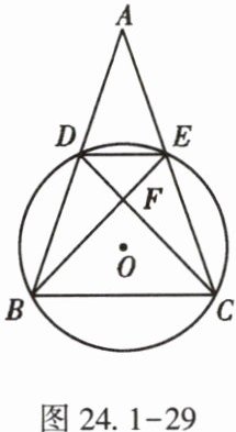 12. (★★)如图24.1-29,在⊙O中,已知$\overset{\frown}{BD}= \overset{\frown}{CE}$,那么图中共有____全等三角形.【 】