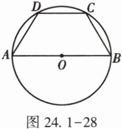 11. (★★)如图24.1-28,AB是⊙O的直径,BC,CD,DA是⊙O的弦,且$BC = CD = DA$,则$\angle BCD$等于【 】
