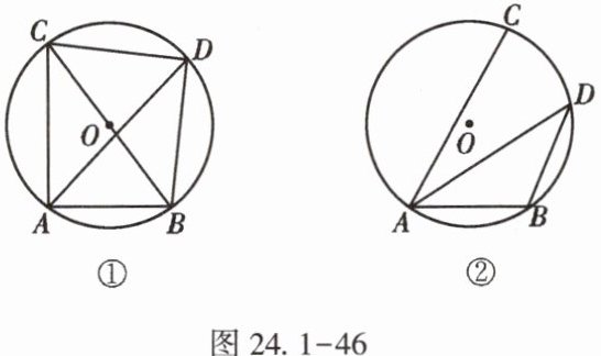 (1)如图 24.1-46①,若$BC为\odot O$的直径,$AB = 6$,求$AC$,$BD$,$CD$的长;