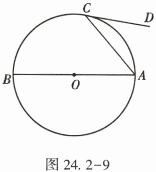 8. (★★)如图24.2-9,已知AB是⊙O的直径,CD是⊙O的切线,C为切点,且∠BAC= 50°,则∠ACD的度数为______.