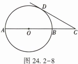 7. (★★)如图24.2-8,AB是⊙O的一条直径,延长AB至C,使得AC= 3BC,CD与⊙O相切,切点为D. 若CD= √{3},则线段BC的长度等于______.