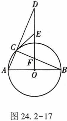16. (★★)(河南)如图24.2-17,AB是⊙O的直径,DO⊥AB于点O,连接DA交⊙O于点C,过点C作⊙O的切线交DO于点E,连接BC交DO于点F.