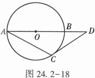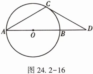 15. (★★★)如图24.2-16,AB是⊙O的直径,点D在AB的延长线上,点C在⊙O上,CA= CD,∠D= 30°.