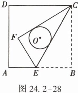 14. (★★)如图24.2-28,正方形$ABCD$的边长为4,点$E是AB$上的点,将$\triangle BCE沿CE折叠至\triangle FCE$,若$CF$,$CE恰好与以正方形ABCD的中心为圆心的\odot O$相切,则折痕$CE$的长为____.