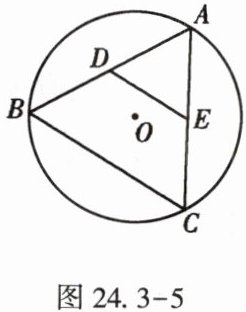 15. (★★)(德阳)如图24.3-5,点$D$,$E分别是\odot O的内接正三角形ABC的AB$,$AC$边上的中点,若$\odot O$的半径为2,则$DE$的长等于【 】