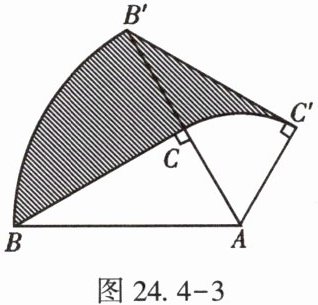 8. (★★)如图24.4 - 3,在$\mathrm{Rt}\triangle ABC$中,$\angle ACB = 90^{\circ}$,$\angle BAC = 60^{\circ}$.把$\triangle ABC绕点A按顺时针方向旋转60^{\circ}后得到\triangle AB'C'$,若$AB = 4$,则线段$BC$在上述旋转过程中所扫过部分(阴影部分)的面积是【 】