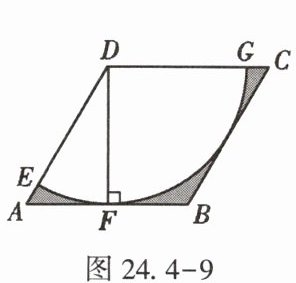 14. (★★)(重庆)如图24.4 - 9,在边长为6的菱形$ABCD$中,$\angle DAB = 60^{\circ}$,以点$D$为圆心,菱形的高$DF$为半径画弧,交$AD于点E$,交$CD于点G$,则图中阴影部分的面积是【 】