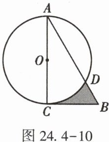 15. (★★)如图24.4 - 10,在$\mathrm{Rt}\triangle ABC$中,$\angle A = 30^{\circ}$,$BC = 2\sqrt{3}$,以直角边$AC为直径作\odot O交AB于点D$,则图中阴影部分的面积是【 】